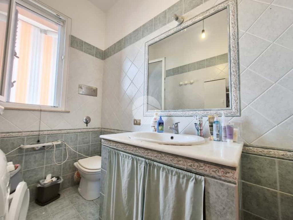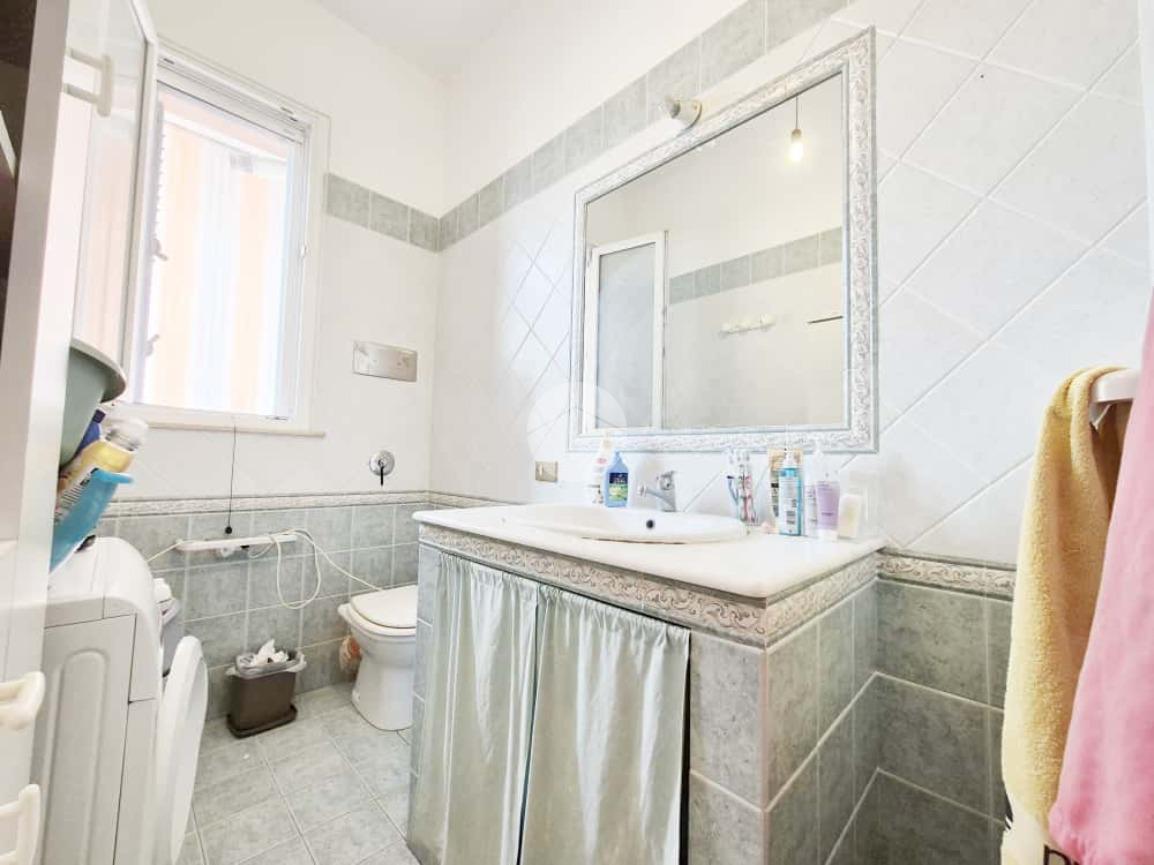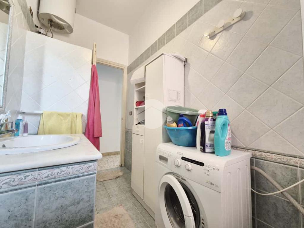 Il servizio presenta mobile lavabo in muratura, box doccia e punto lavatrice ed è dotato di finestra; inoltre un comodo ripostiglio completa la composizione interna.