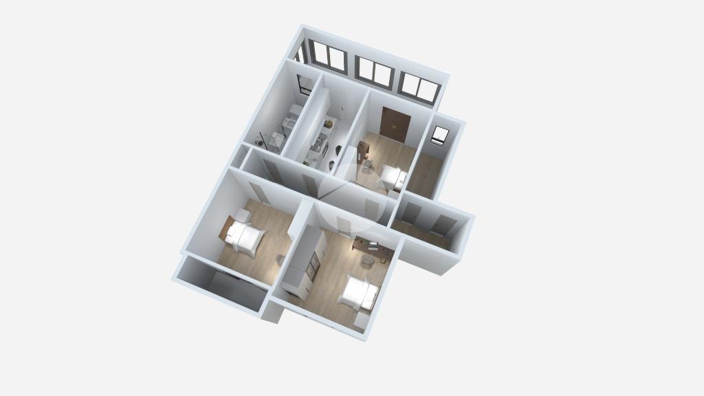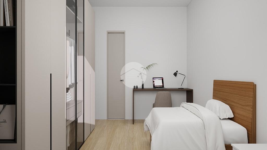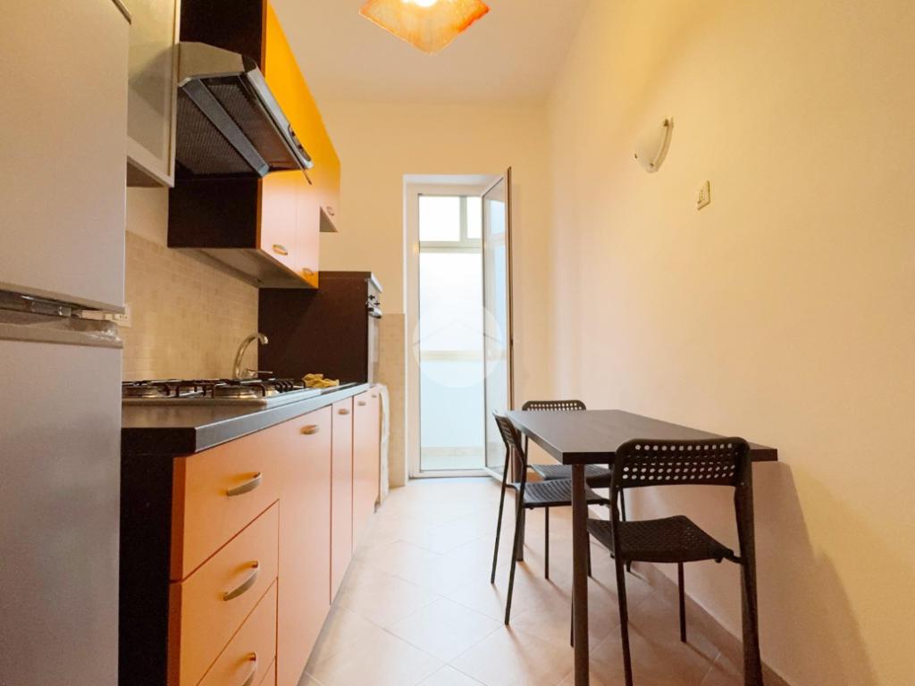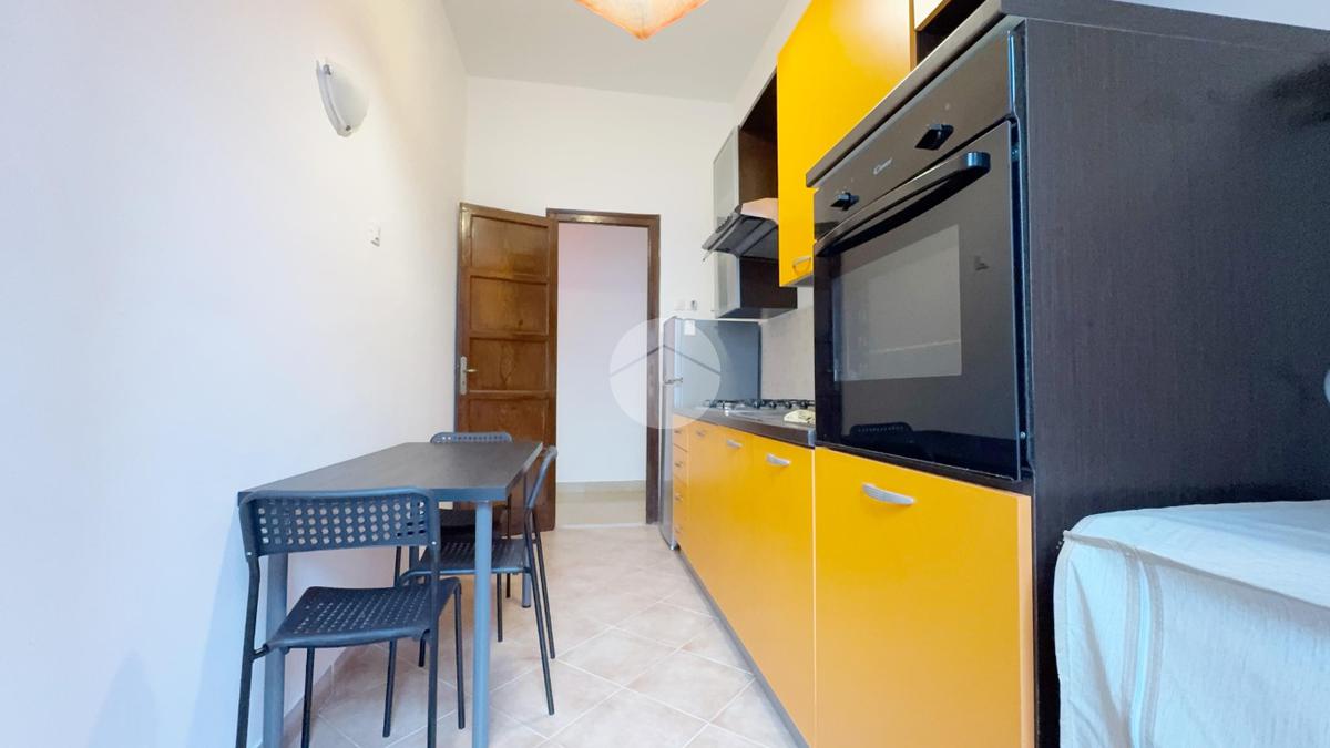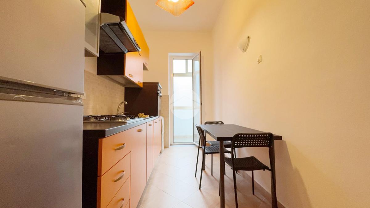 Di uso condiviso sono i servizi; la cucina arredata con mobilia moderna, presenta una parte lineare e tavolo che può ospitare tre persone durante i pasti ed è collegata al balcone verandato con esposizione interna; il bagno è con box doccia.