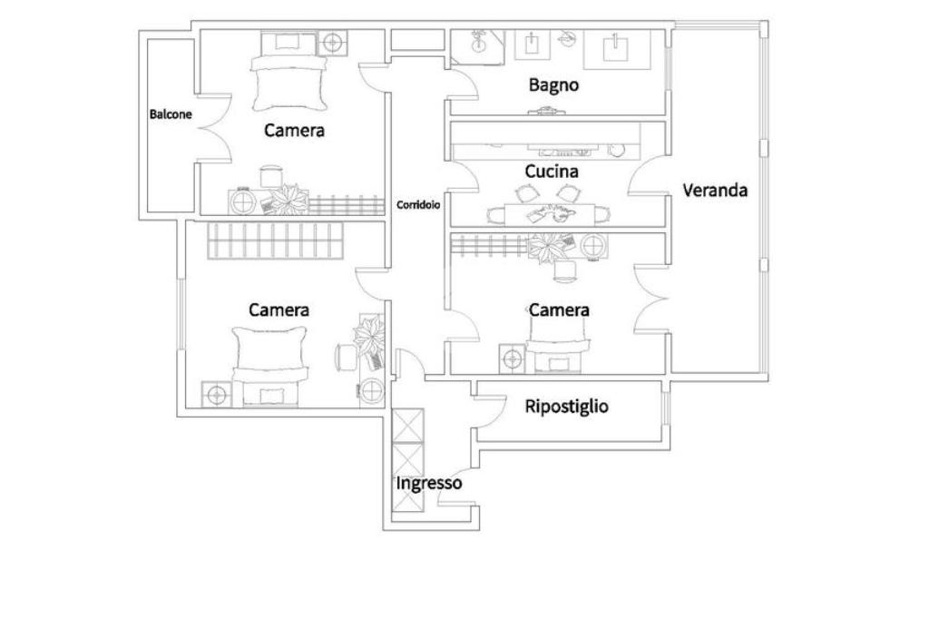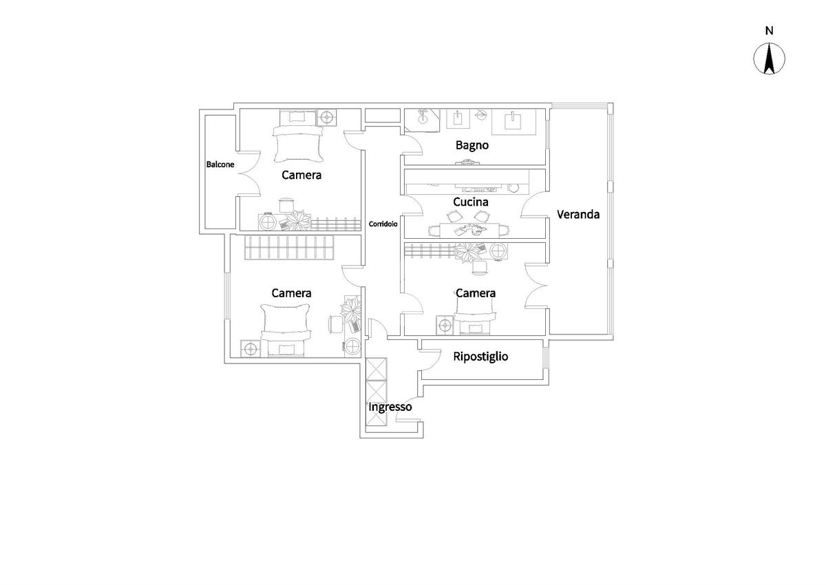 L'appartamento si estende su una superficie di 98 mq e comprende tre camere da letto.