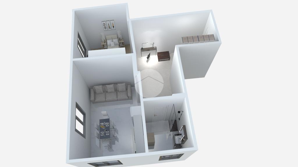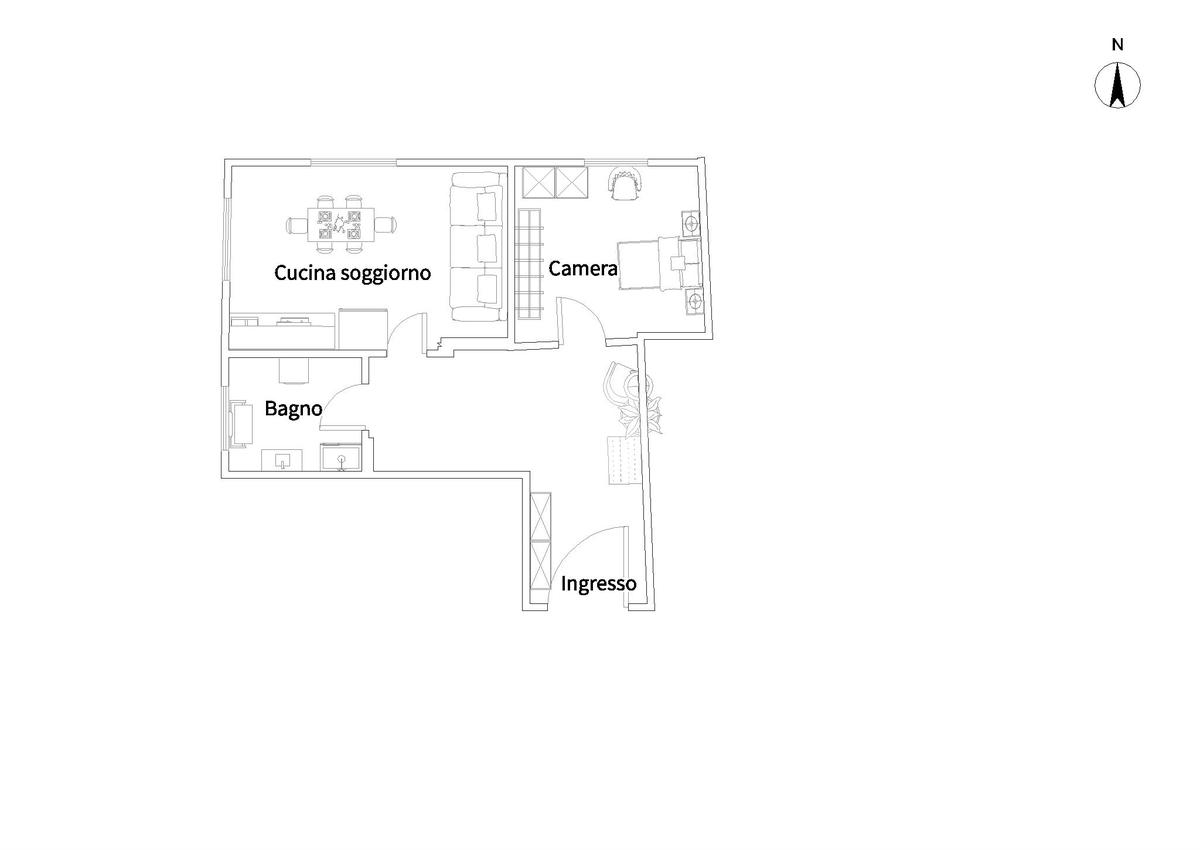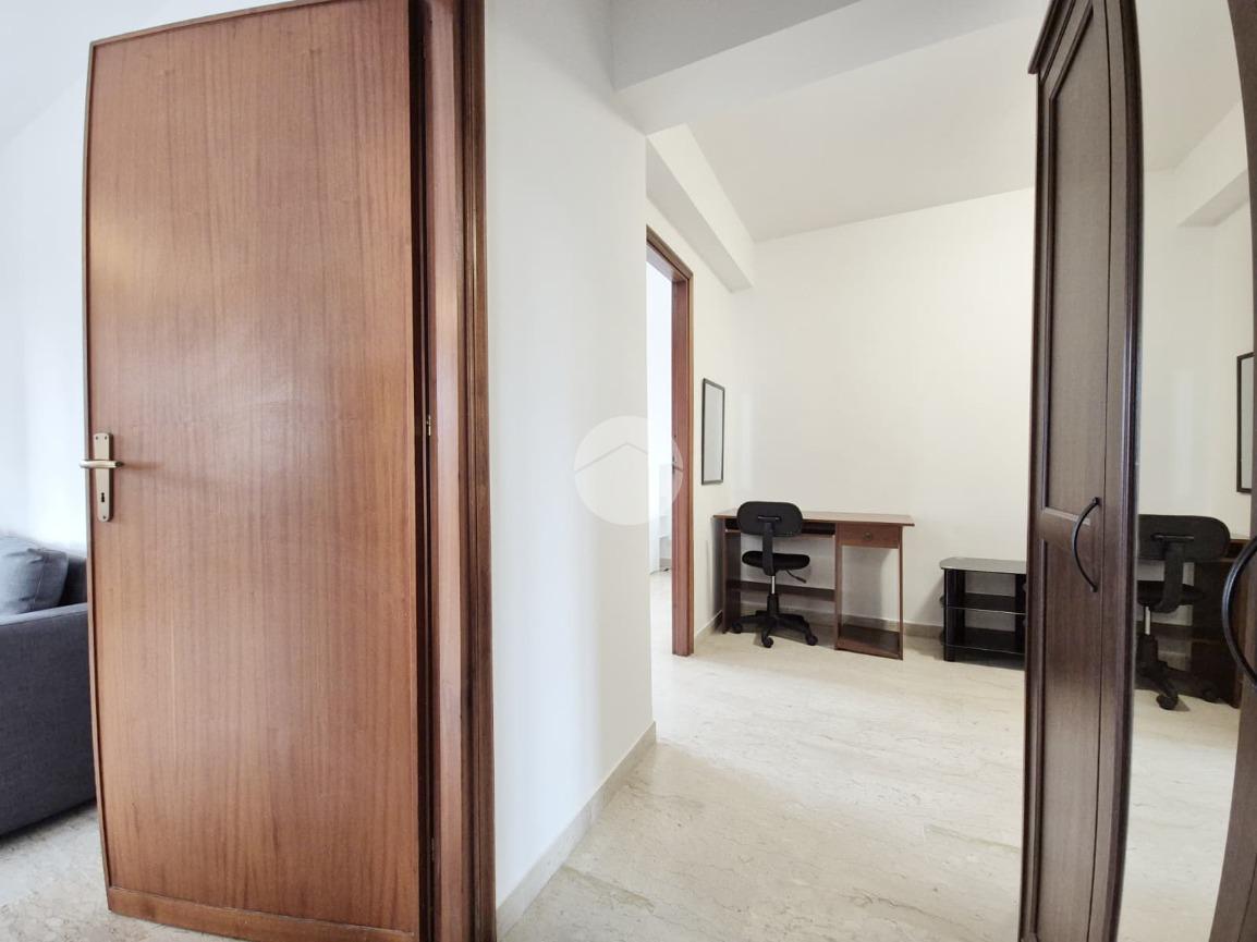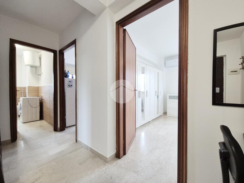 L’ingresso da porta blindata verte sulla saletta d’ingresso che conduce ad un piccolo disimpegno, dal quale si accede alla camera da letto matrimoniale, alla cucina abitabile di 16mq dotata di due punti luce ed al bagno con box doccia.