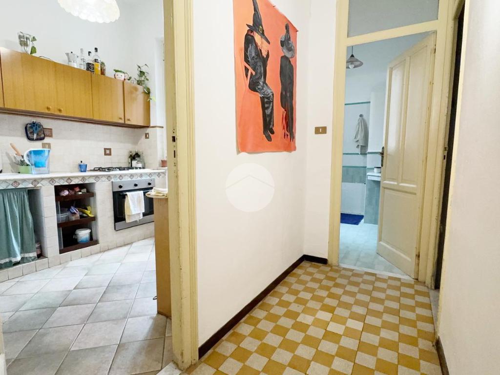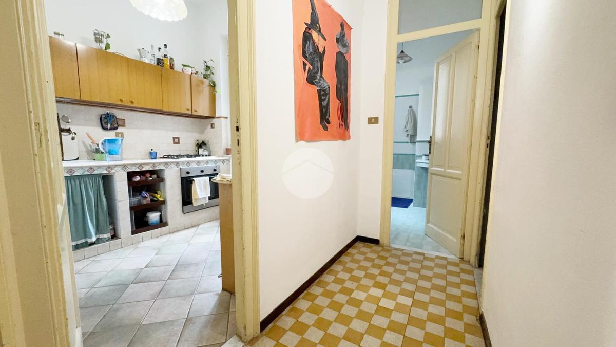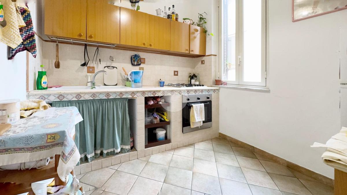 Luminoso grazie al piano alto e alla doppia esposizione, verte in buone condizioni complessive. Gli impianti sia idrico che elettrico in buono stato, la pavimentazione è in cementino decorato nella zona notte e ceramica e cotto nei servizi e gli infissi sono in alluminio e vetrocamera con persiane esterne.