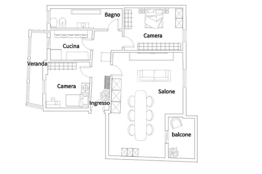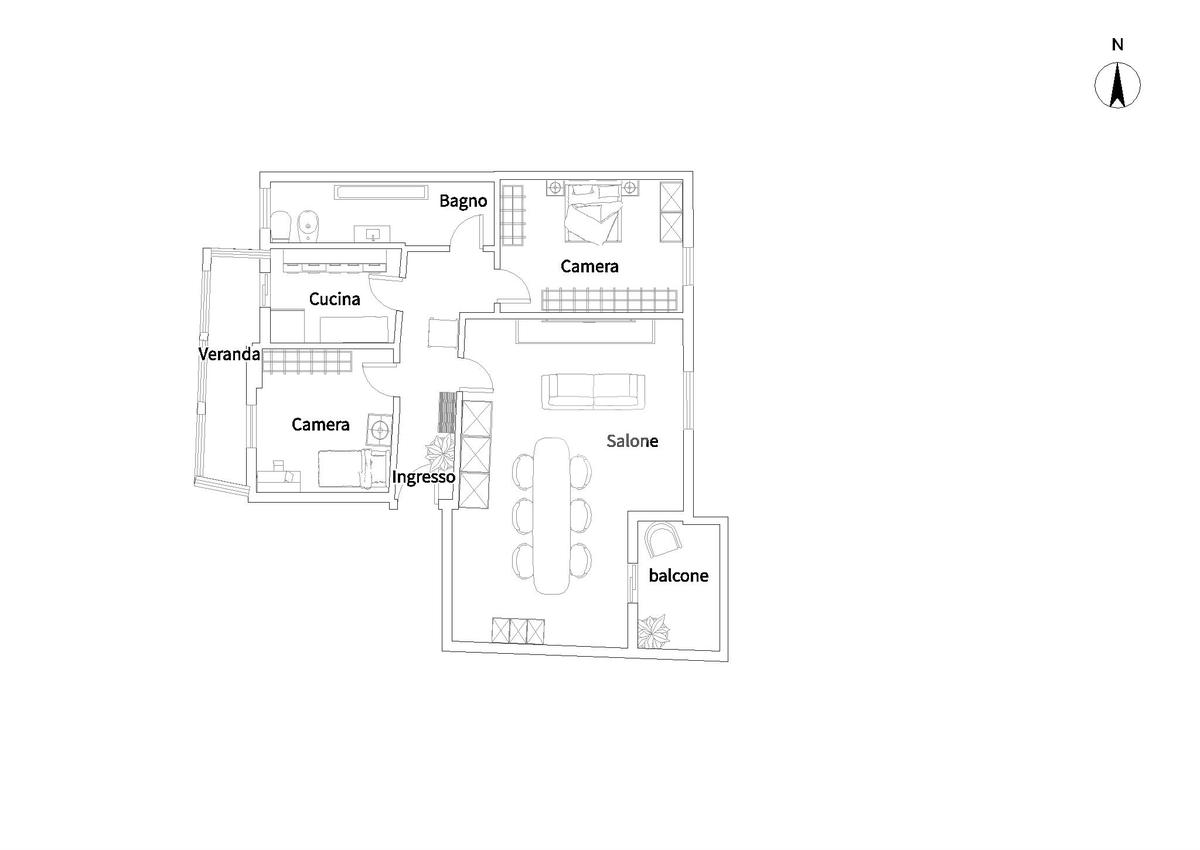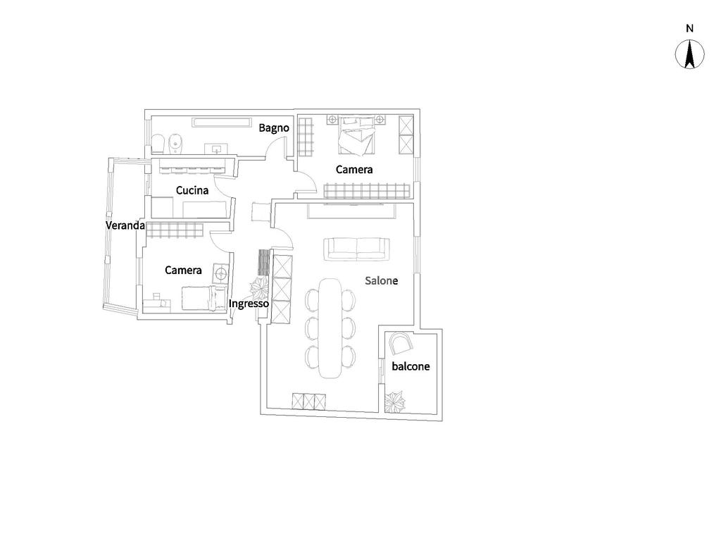 Il primo vano utile è il salone, facilmente divisibile, con uscita sul balcone con esposizione sulla via principale.