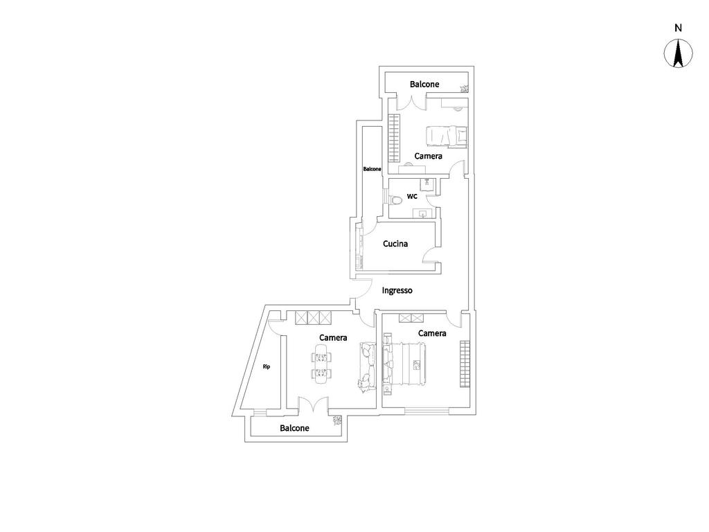 La cucina non abitabile ha esposizione sul balcone su retroprospetto; il soggiorno di circa 20mq dispone di un balcone con esposizione sulla Via Agostino Todaro.