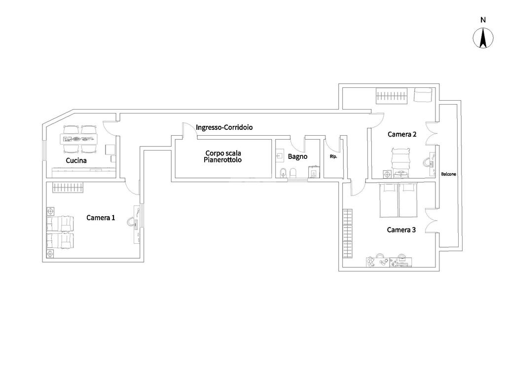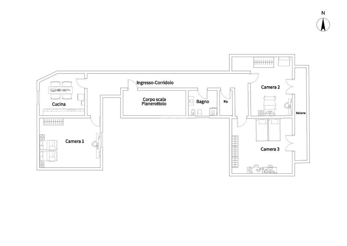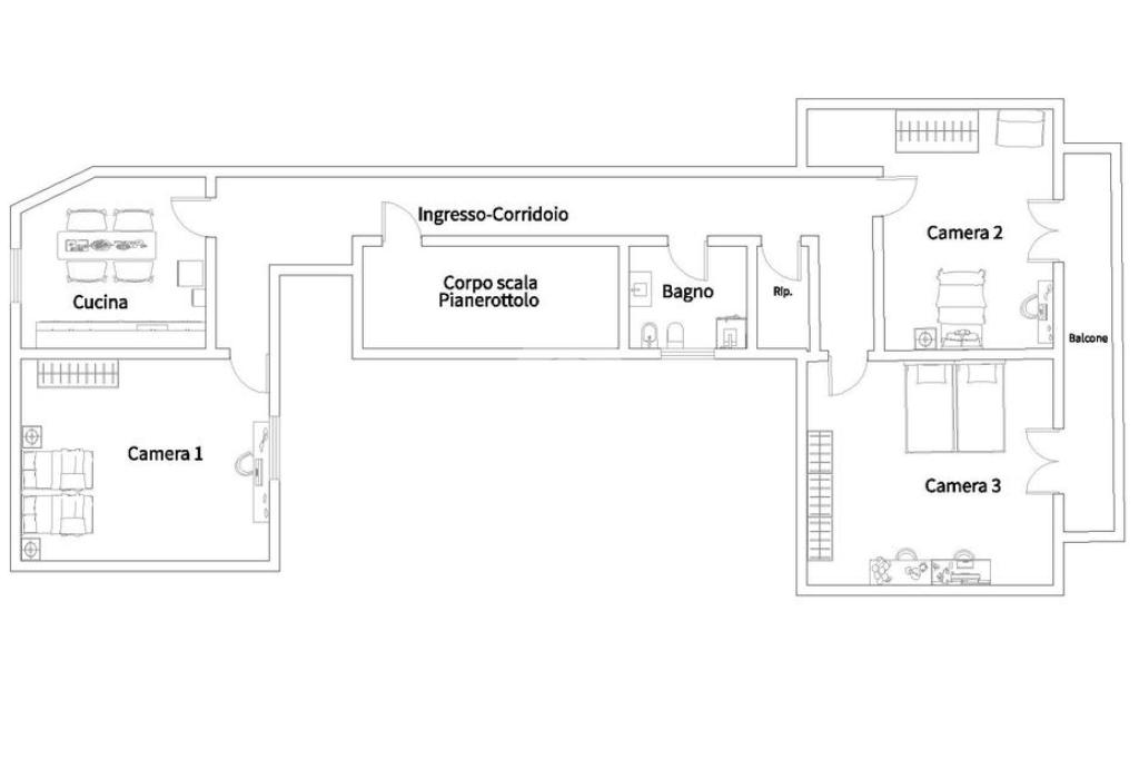 Sono presenti tre camere da letto matrimoniali luminose e ariose, pensate per offrire un ambiente confortevole; la cucina è di comode dimensioni e può ospitare serenamente quattro persone durante i pasti.