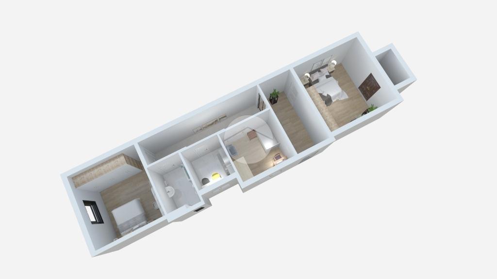 La cucina semi - abitabile ha la finestra e può ospitare tre persone durante i pasti, il servizio ha la vasca da bagno.
