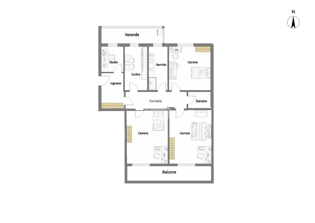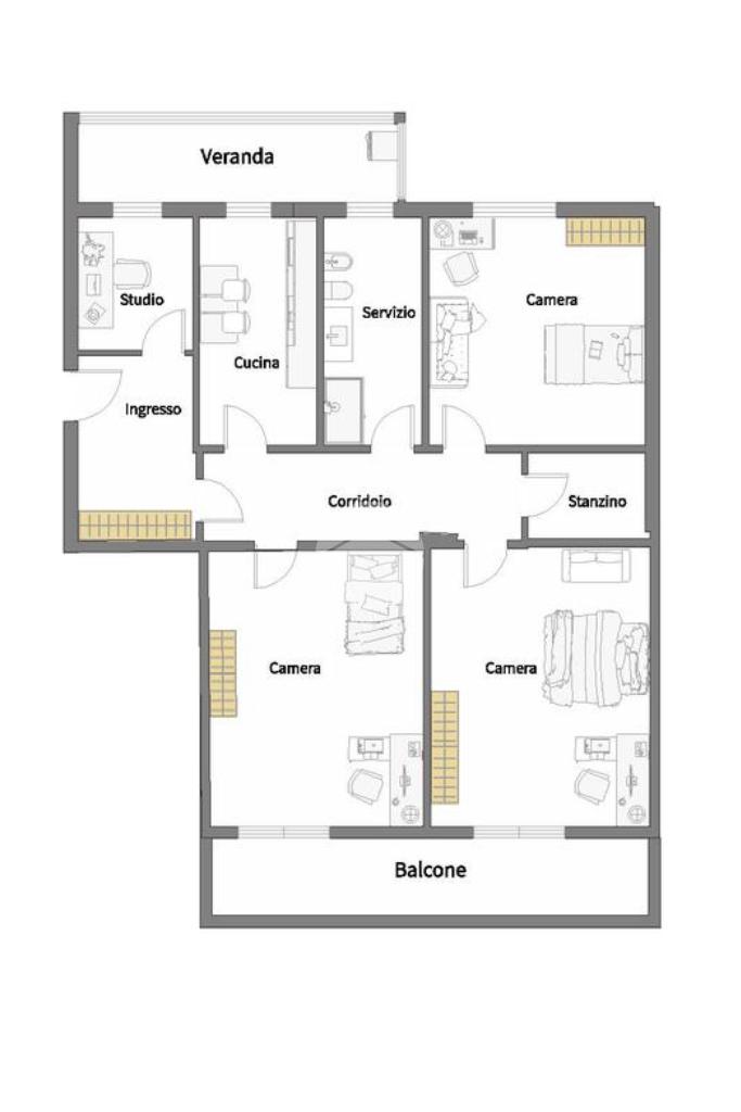 L'immobile offre spazi ben distribuiti e moderni; Sono presenti tre camere da letto di conformazione regolare e di facile arredoù.